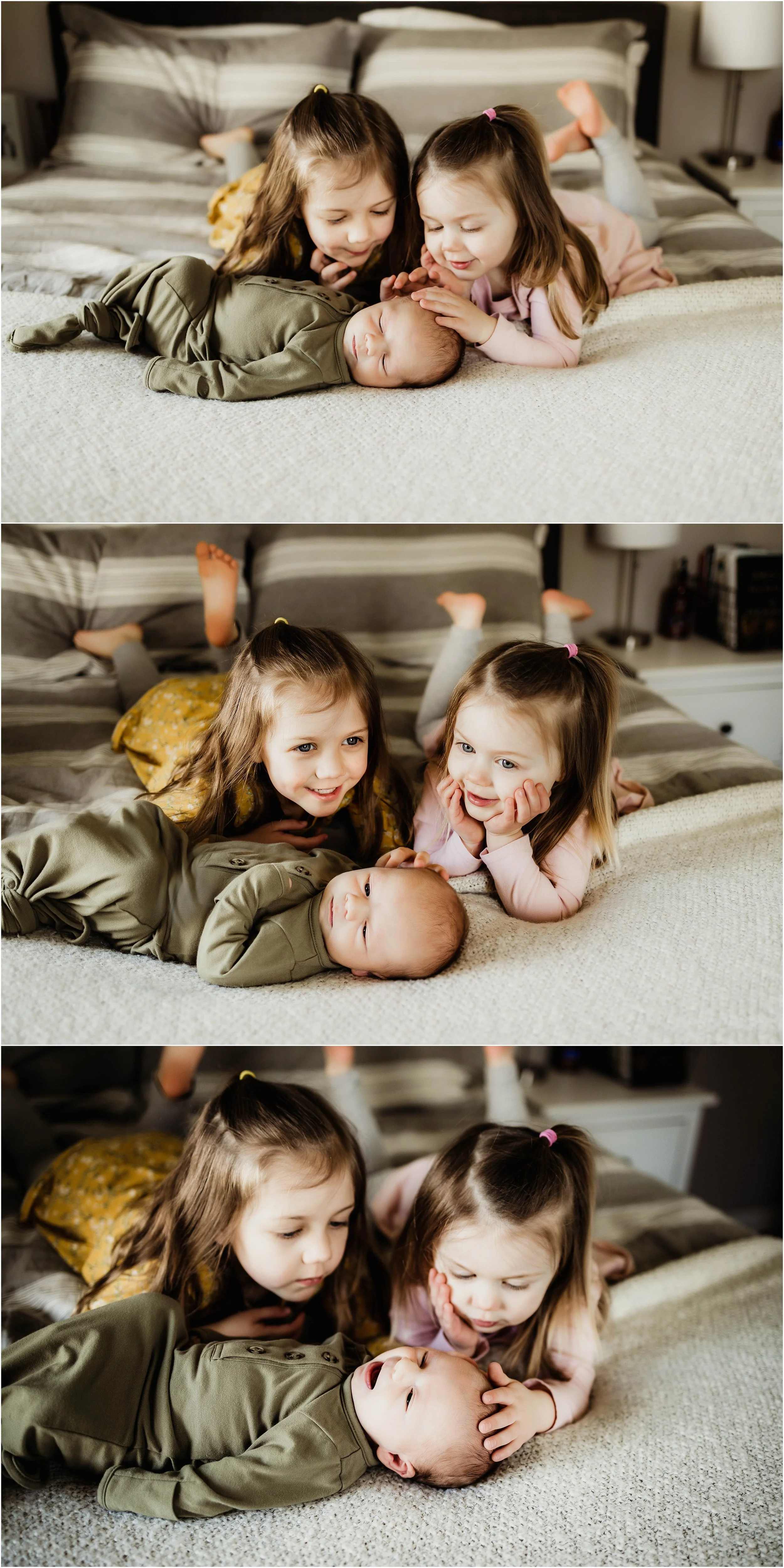 Bringing home a new baby is a beautiful, emotional time. No matter if it is your first baby or third, it’s a time of immense love. As a lifestyle photographer, being welcomed into your home to photograph these early moments of joy and connection is an absolute honor. It was a pleasure to watch these big sisters swoon over baby Camden.